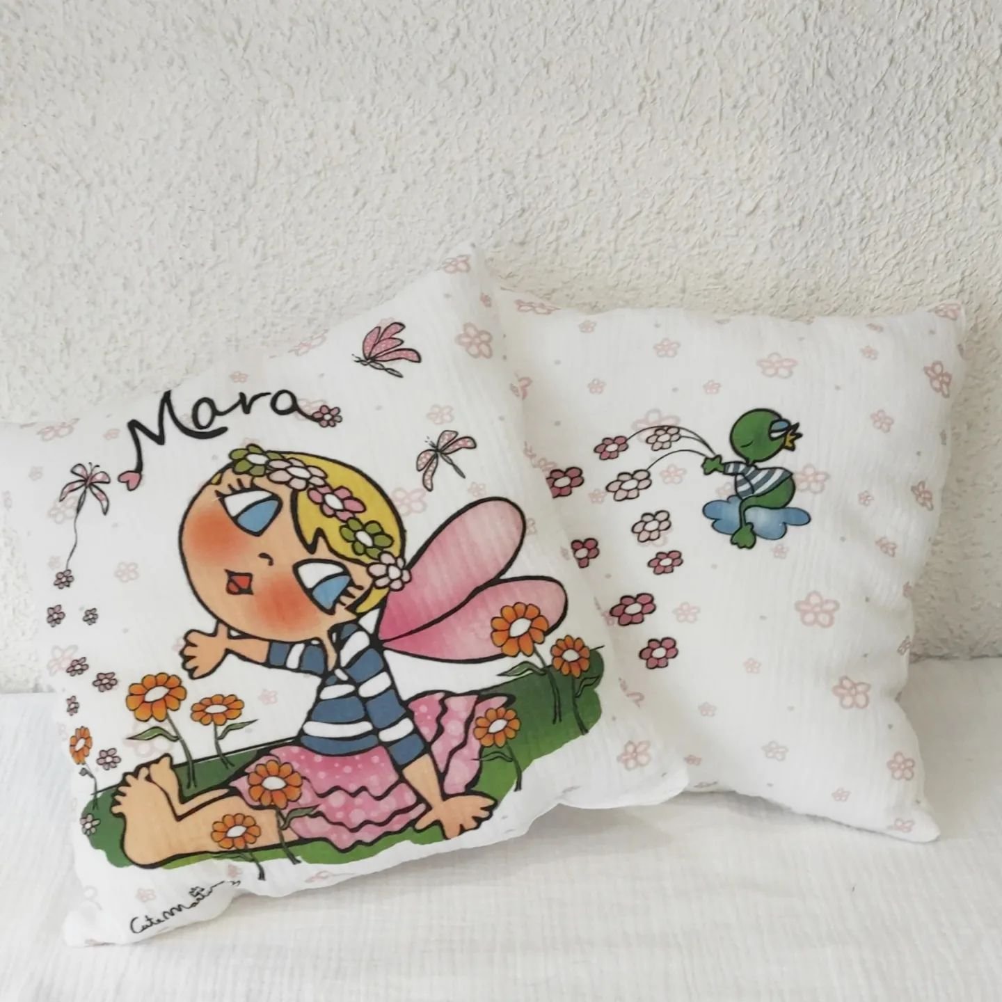 - Cojines con nombre para decorar su rincón favorito.